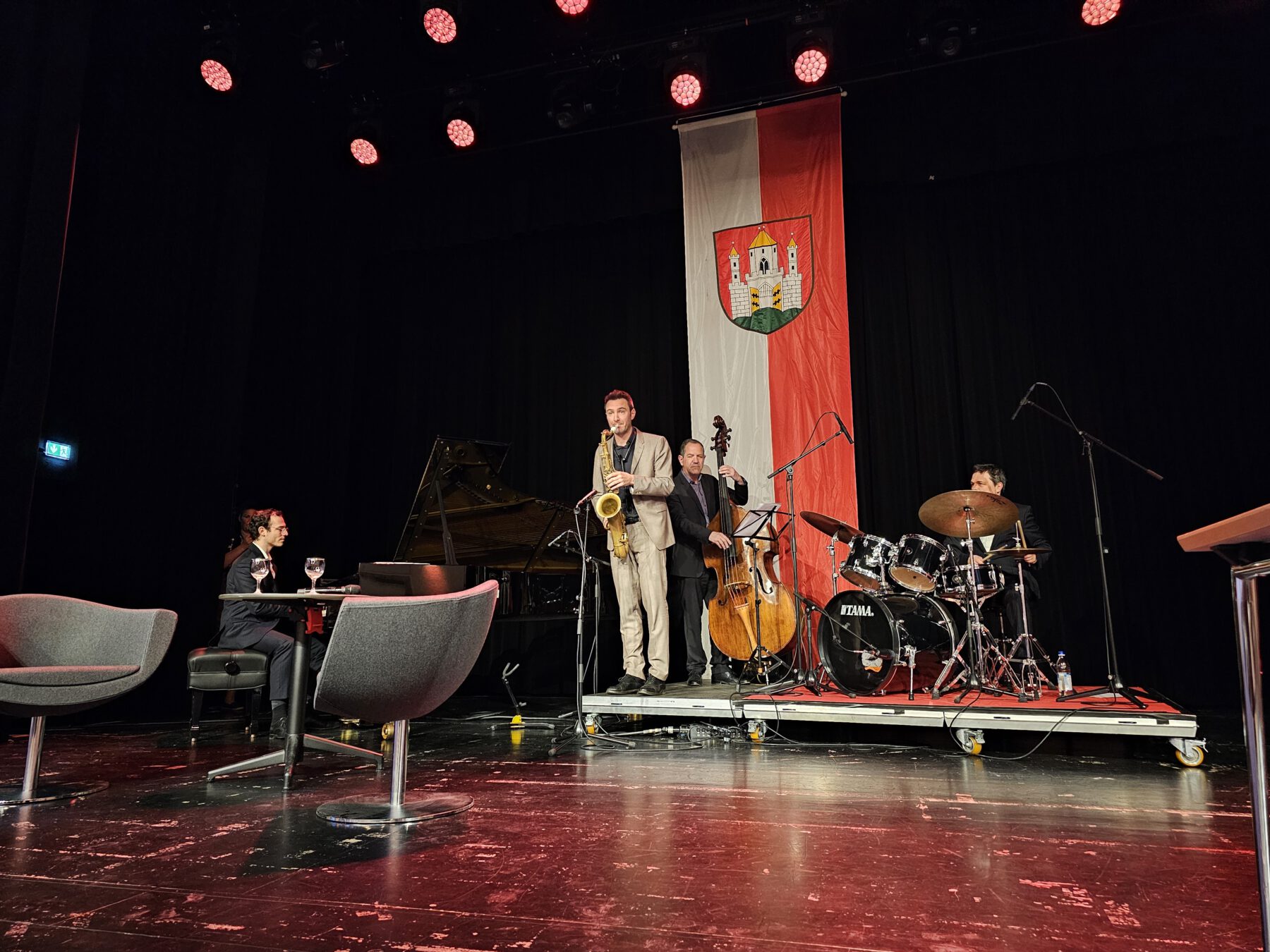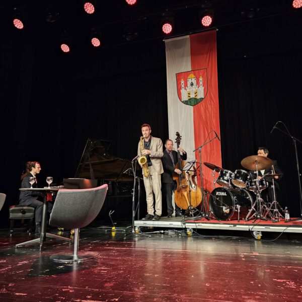 Im Anschluss gab es ein bayerisches Buffet, viele Gespräche und ein sehr geselliges Beisammensein. Michaela May signierte ihre Bücher und war in Gespräche vertieft. Musikalisch sehr stimmungsvoll und hochkarätig mit Jazz unterhalten haben an diesem Abend Wolfgang Hanniger, Julian Schmidt, Manolo Diaz und Matthias Gmelin.