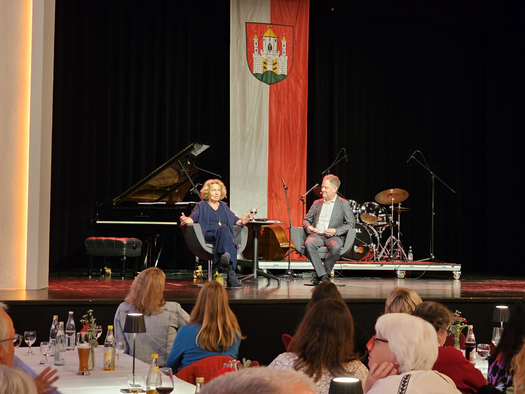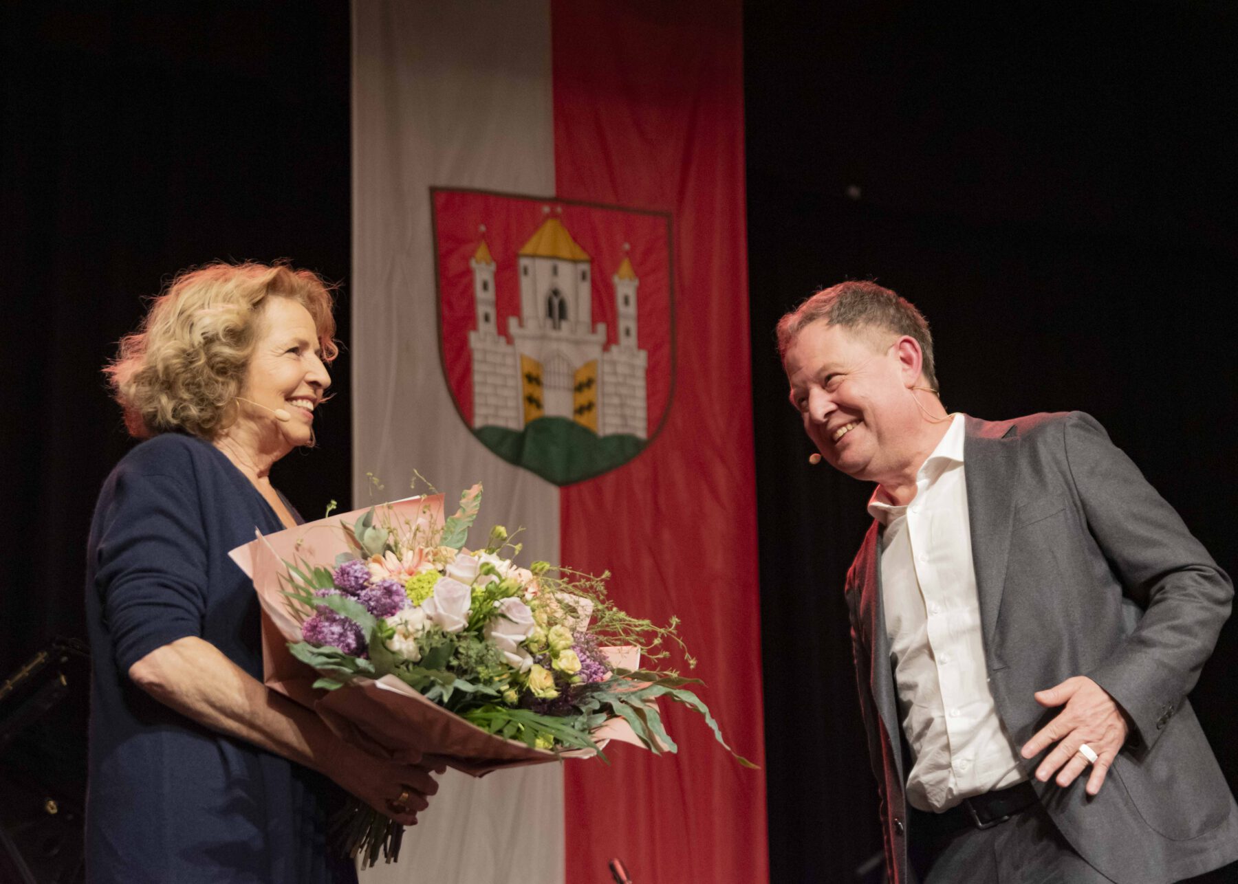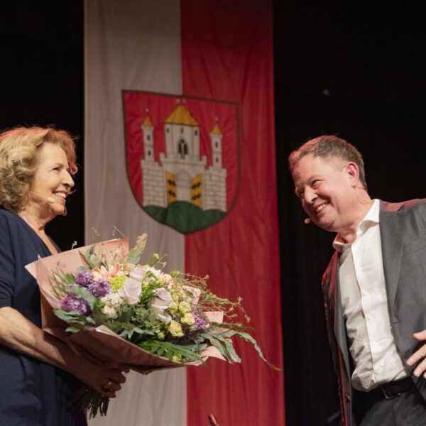 Es war ein sehr persönlicher Abend, denn nach der emotionalen, kurzweiligen Lesung unterhielt sich Bürgermeister Schneider auf dem Podium mit der Ausnahmeschauspielerin. Sie gab viele private Einblicke in ihr Leben. Es gebe ihr Halt und Zuversicht, dass sie mit dem schweren Schicksal ihrer Familie nach dem Tod der Eltern, vorher hat man nicht darüber gesprochen, an die Öffentlichkeit gegangen ist. „Ich bekomme häufig die Rückmeldung, dass viele Menschen schlimme Schicksalsschläge erleben mussten. Ich bin da nicht alleine. Und das macht uns allen Mut. Ich liebe dieses Leben, noch mehr, weil ich weiß, wie endlich es ist“, so Michaela May. Die 300 ehrenamtlichen Zuhörer lauschten gebannt dem Podiumsgespräch. Man hätte eine Stecknadel fallen hören, so interessiert hörten die Burghauser der selbst so engagierten zweifachen Mutter zu.
