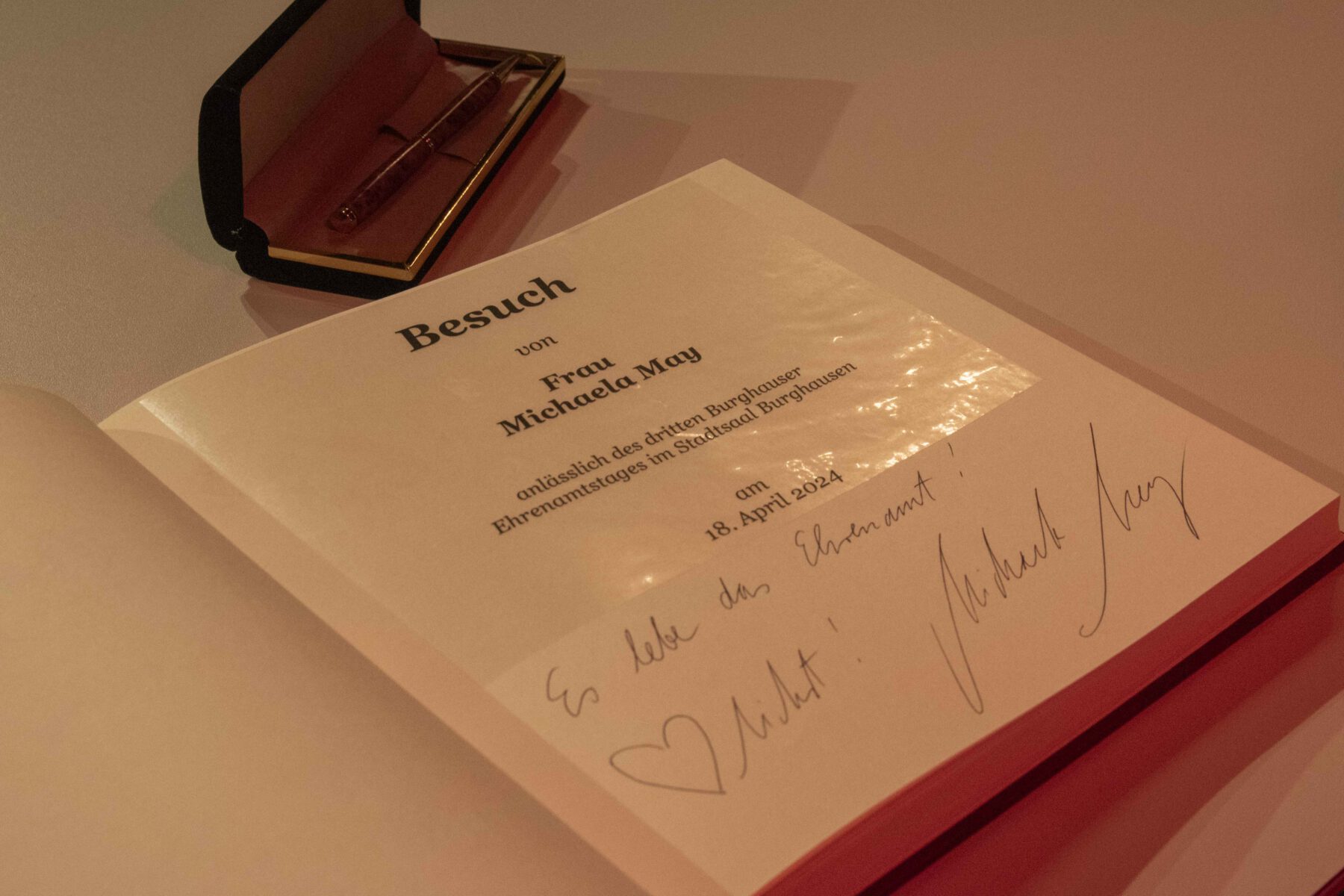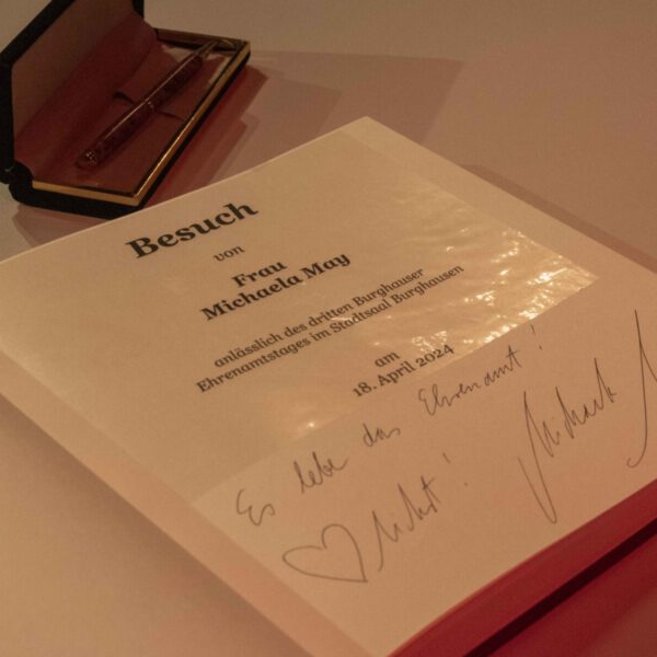 Burghausen. 300 Ehrenamtliche waren der Einladung der Stadt Burghausen gefolgt. Am Donnerstagabend begrüßte sie Erster Bürgermeister Florian Schneider im Stadtsaal: „Danke! Was ihr alle für die Gemeinschaft leistet, ist so wichtig. Ohne euch wäre Burghausen nicht so lebenswert. Das ist euer Abend.“ Als Stargast konnte Schauspielerin Michaela May gewonnen werden, die aus ihrem autobiografischen Spiegel-Bestseller „Hinter dem Lächeln“ vorlas und selbst seit Jahrzehnten vielfach ehrenamtlich aktiv ist. Am Ende des Abends schrieb sie in das Gästebuch der Stadt: „Ich liebe das Ehrenamt!“ Und das konnte man spüren. Zum ersten Mal las sie vor Publikum das Kapitel Ehrenamt aus ihrem Buch, das in fünfter Auflage erschienen ist. Ein anrührender Text und eine wahre Geschichte aus dem Leben Michaela Mays.