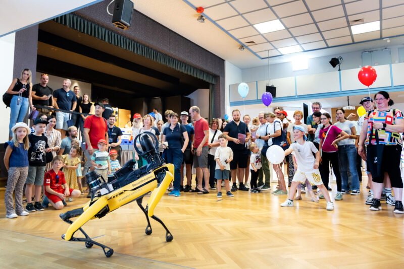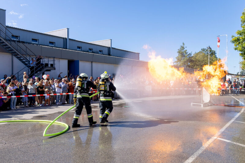 Am Eingang des Belegschaftshauses war die große Salzausstellung aufgebaut, die anlässlich des diesjährigen Jubiläumsjahres – 1000 Jahre Burghausen und 111 Jahre WACKER – gemeinsam mit der Stadt konzipiert wurde. Die Belegschaftsbücherei lud zum Stöbern und Schmökern ein und Experten von WACKER kamen mit den Besuchern an den Informationsständen ins Gespräch über die Themen Energie, Nachhaltigkeit, Sicherheit, Gesundheit, Personalwesen und Betriebsrat. Auch die Standortfirmen Westlake Vinnolit GmbH und Siltronic AG stellten ihre Unternehmen vor. Auf der Bühne des Festsaals wurde es futuristisch – im dortigen Innovationsbereich zeigten KI-gestützte Roboter ihr Können und die autonomen Transportfahrzeuge Starship und der Roboterhund SPOT mischten sich unters Publikum. Für großen Andrang und Begeisterung sorgte auch die Science Show der WACKER-Chemiker, die mit ihren verblüffenden Versuchen und alltagstauglichen chemischen Tricks Jung und Alt in Atem hielten. Ähnlich heiß ging es bei den Löschübungen der Werkfeuerwehr zu, die zusätzlich zu den feurigen Vorführungen auch am Dorfnerweg ihren beachtlichen Fuhrpark ausstellten. Das kam vor allem bei den Kindern gut an, die sich obendrein noch im Animationsbereich austoben konnten.