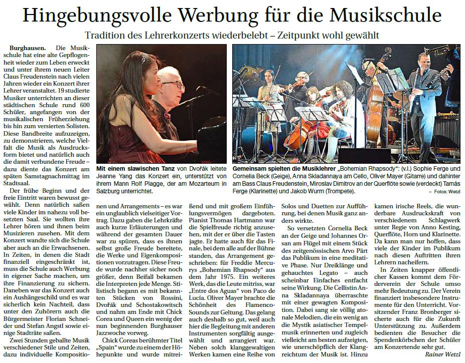 Mit einem stilistisch sehr vielfältigen Lehrerkonzert am 14.03.2026 stellte das Kollegium der Musikschule der Stadt Burghausen seine künstlerische Kompetenz unter Beweis, die eine wesentliche Grundlage für den erfolgreichen Unterricht an unserem Hause bildet.