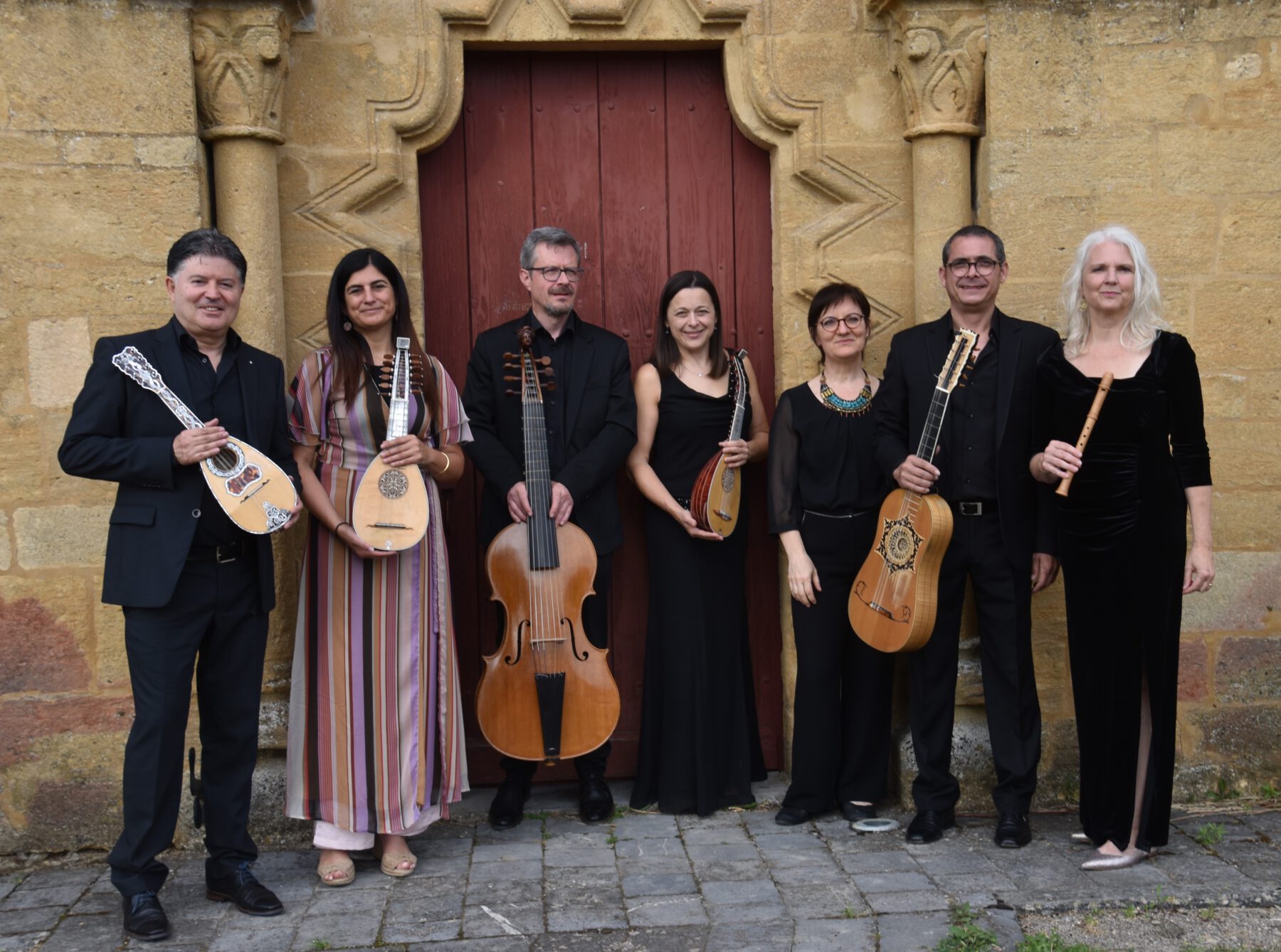 Mit ihren wunderbaren Gamben, Mandolinen und Gitarren sind sie europaweit unterwegs, so z. B. auch bei den Tagen Alter Musik in Regensburg. Begleitet wird das Ensemble von der virtuosen Blockflötistin Meike Herzog, die ihr Können aus der Musik des Mittelalters, dem Folk, improvisierter Musik und Jazz herleitet. Die Erfahrung mit diesen verschiedenen Genres prägt ihren Stil – spannungsreich, rhythmisch pointiert und klanglich differenziert. Im gemeinsamen Programm „Alla Ciaccona“ wetteifern Blöckflöte und Mandoline über ein Basso ostinato. Es finden sich leidenschaftliche Impulse der italienischen Musik, ausgefeilte Melodien wechseln sich ab mit brillanten rhythmischen Passagen. Das gibt einen Einblick in jenes 17. Jahrhundert, das in allen Künsten und so auch in der Musik die