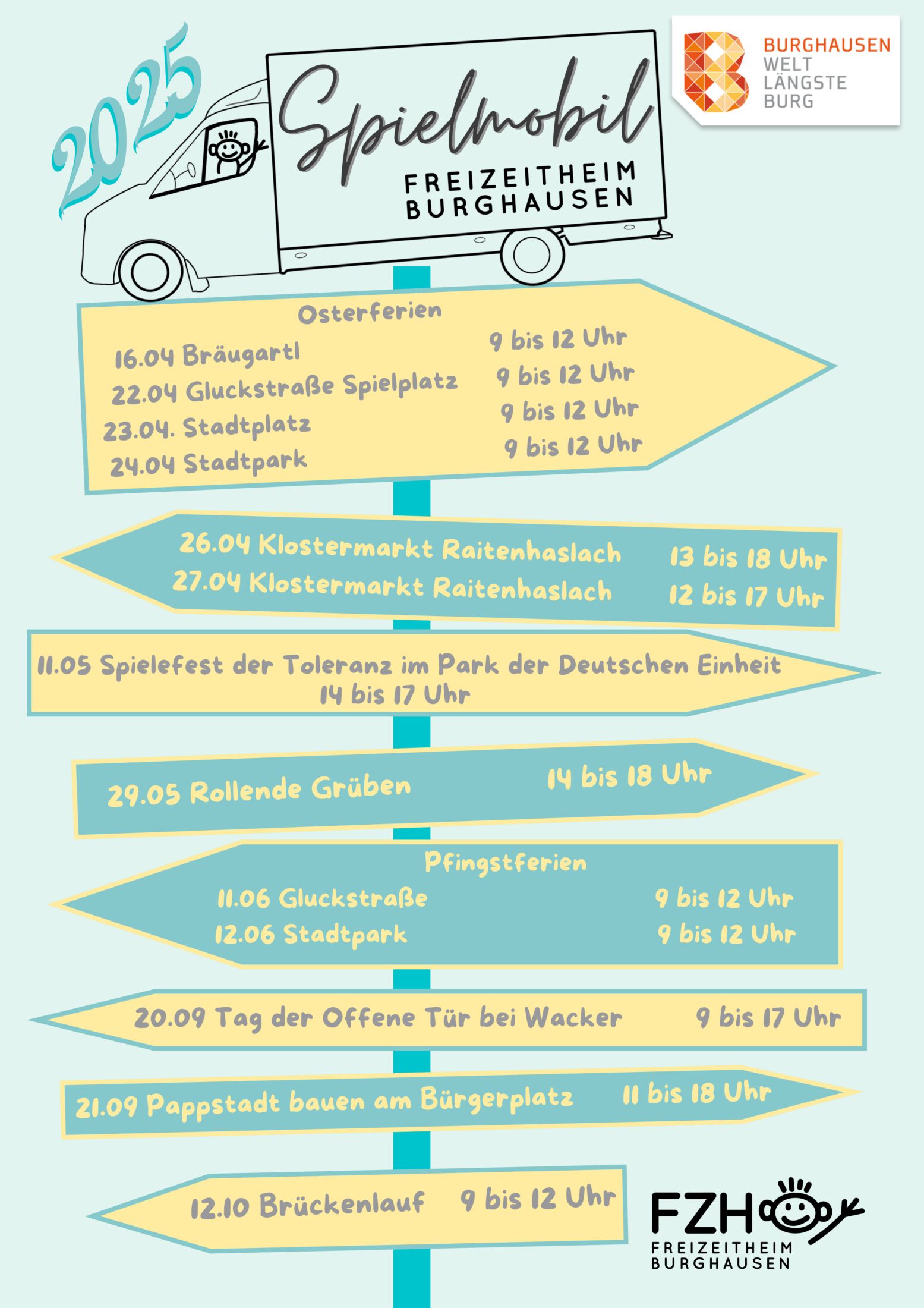 Auch 2025 ist das Burghauser Spielmobil wieder in der ganzen Stadt unterwegs – mit tollen Aktionen, kreativen Spielen und bunten Überraschungen für die ganze Familie!