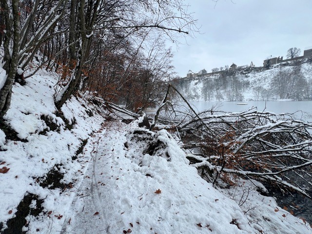 Fotos: Vorher – nachher: Der Schneeeinbruch am ersten Dezemberwochenende 2023 hat große Schäden auch am Wöhrsee angerichtet. Die Stadt Burghausen hat die Wege neu und etwas breiter als bisher angelegt.