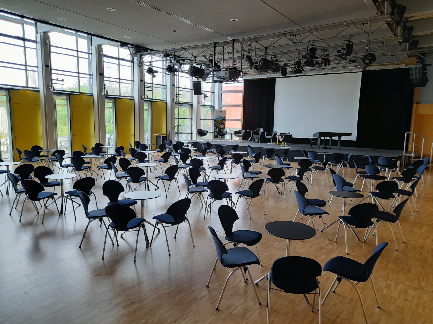 Mit einer großzügigen Fläche von 300 m² ist der Bürgersaal der größte Raum im Bürgerhaus und bietet den perfekten Rahmen für vielfältige Veranstaltungen. Ob Tagungen, Feiern, kulturelle Veranstaltungen oder Vereinsversammlungen – der Saal überzeugt durch seine helle, freundliche Atmosphäre und flexiblen Nutzungsmöglichkeiten. Die Kapazität ist abhängig von der Bestuhlungsart, Ausstattung, Technik, etc.