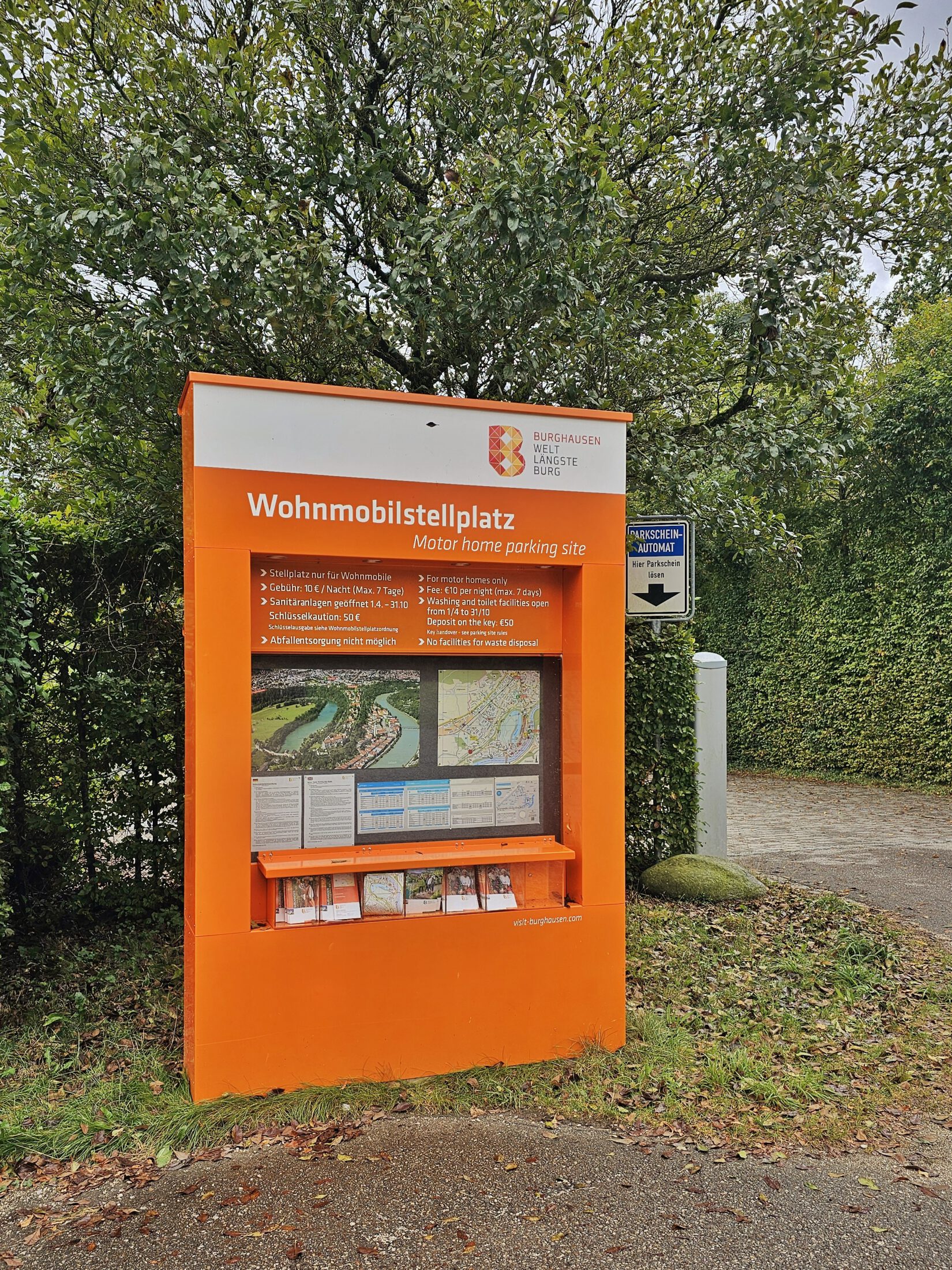 Die Entsorgung läuft auf dem Wohnmobilstellpatz der Stadt Burghausen über das Holiday Clean-System. Die Ver- und Entsorgungsanlagen können die Gäste des Wohnmobilstellplatzes mit einem Münzeinwurf nutzen.