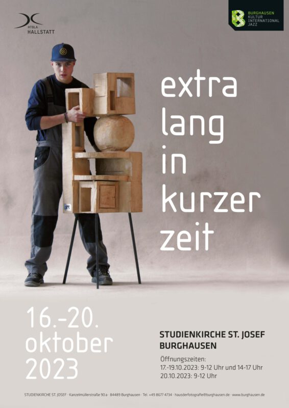 In der Woche von 16. bis 20. Oktober arbeiten acht Schülerinnen und Schüler der Abschlussklasse der Bildhauerschule Hallstatt auf Einladung der Stadt Burghausen zum Burghauser Thema „extra lang in kurzer zeit“ in der Studienkirche St. Josef am Stadtplatz. Es handelt sich um ein offenes Atelier, das besucht werden darf und soll. Dabei steht das Handwerk des Bildhauers im Fokus.