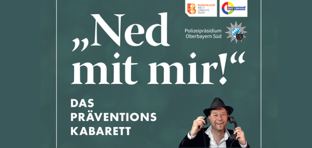 „Lassen Sie sich nicht täuschen und lachen Sie dem Betrug ins Gesicht“: Unter dem Motto „Ned mit mir“ präsentieren Kabarettgröße Tom Bauer und Kriminalhauptmeisterin Elisabeth Fritzsch ein Präventionsprogramm voller Musik, Humor und Informationen, um sich und andere bestmöglich vor Enkeltrick, Schockanrufen, Internetkriminalität und Ähnlichem zu schützen. Das Programm verbindet künstlerische Unterhaltung und Humor mit fundierter Aufklärung, um ältere Menschen effektiv vor Betrügern zu schützen. Umrahmt wird das Kabarett mit wertvollen Tipps und Tricks der Polizei.