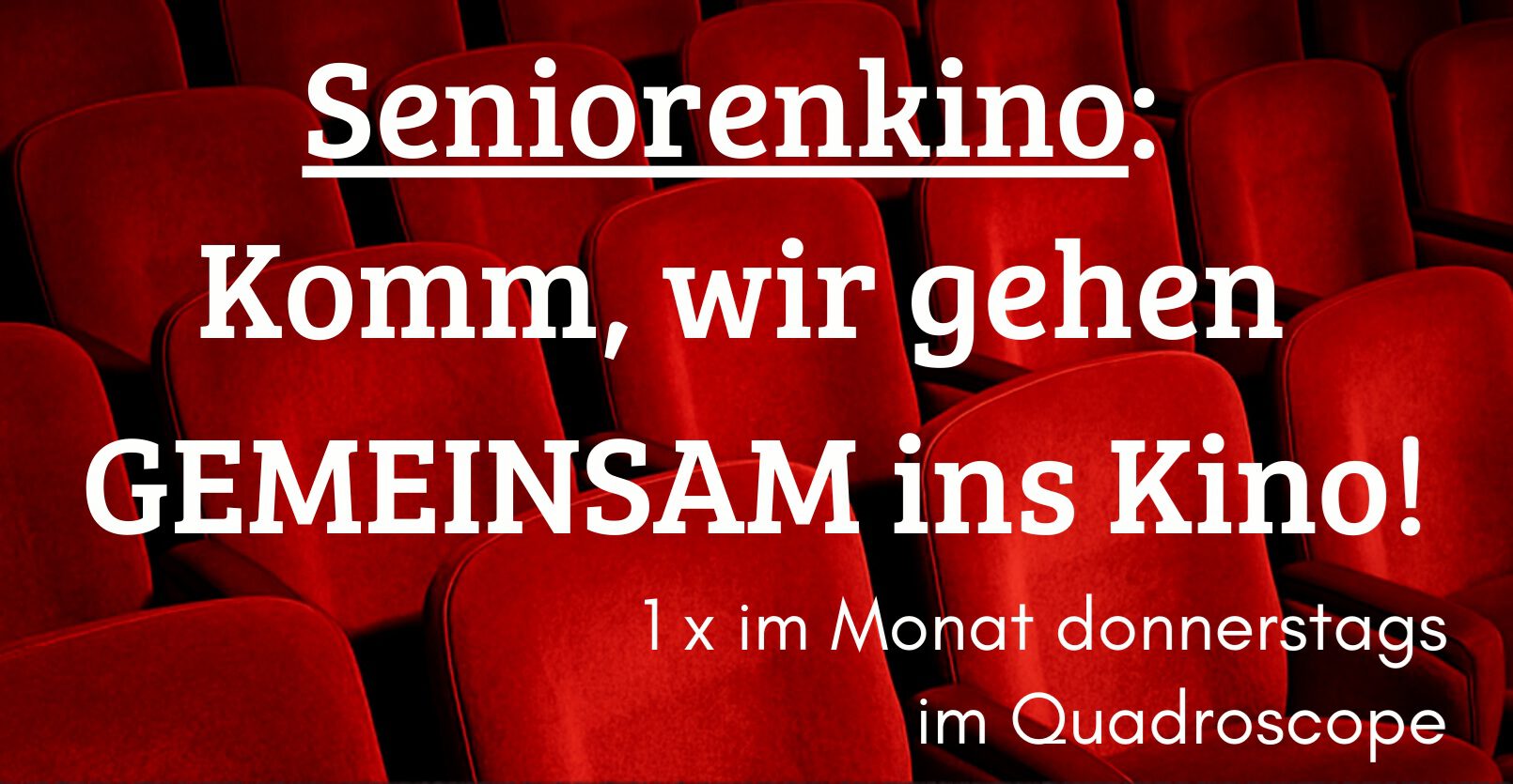Das Seniorenkino ist eine Kooperation zwischen Landratsamt Altötting, Stadtkino Quadroscope Burghausen und dem Seniorenreferat der Stadt Burghausen.