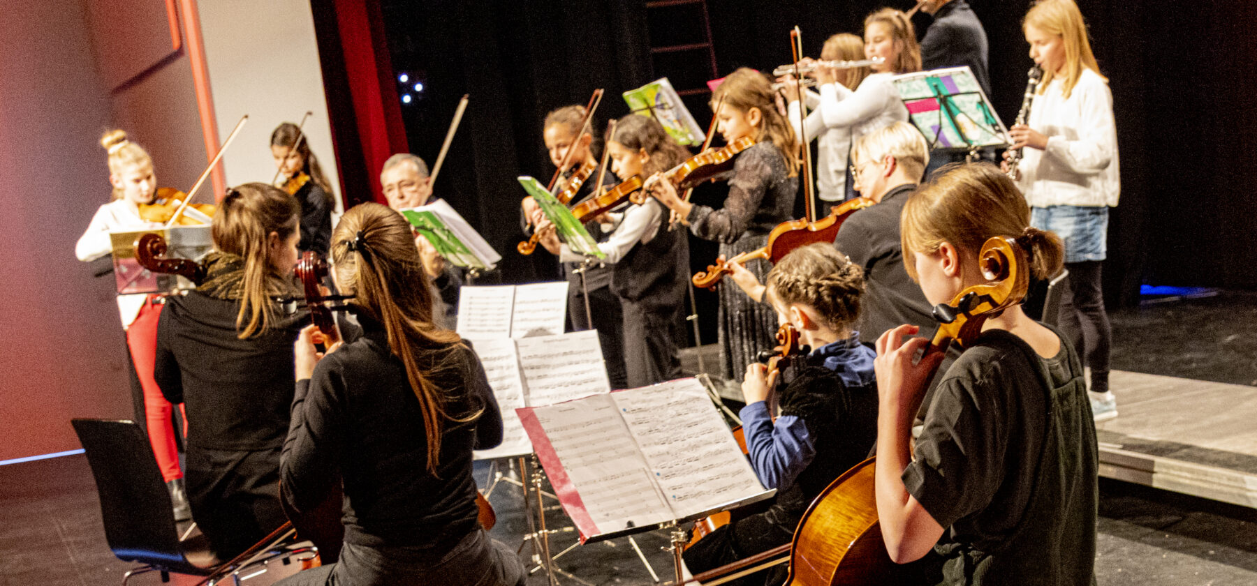 Kinder spielen für Kinder. Ein Konzert mit Beiträgen aus dem Klassenmusizieren in der Kooperation von Musikschule und Burghauser Grundschulen. Die Bläserklassen der Hans-Kammerer-Schule und der Hans-Stethaimer-Schule Raitenhaslach, die Gitarren- und Chorklassen der Johannes-Hess-Schule und die Streicherklassen der Hans-Stethaimer-Schule Altstadt zeigen die Ergebnisse ihrer Arbeit. In der Kinderphilharmonie treffen sich Kinder bis 12 Jahre, um in klassischer Orchesterbesetzung zu spielen.