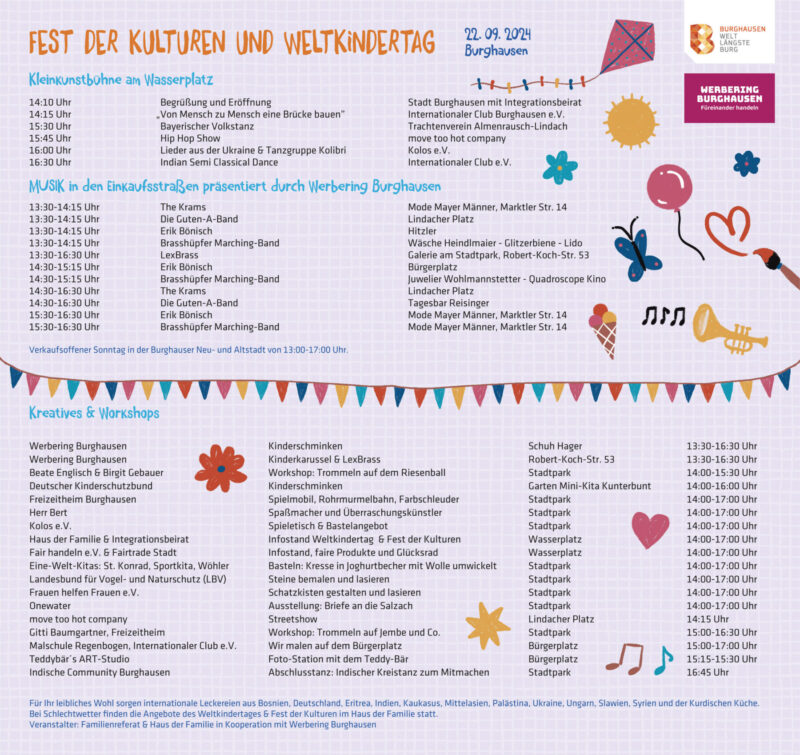 Parallel zum Fest der Kulturen findet der Weltkindertag sowie der verkaufsoffene Sonntag statt.