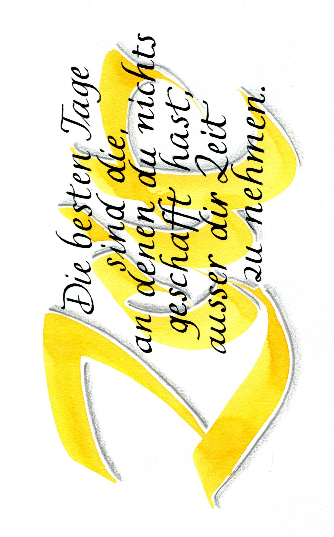 In die­sem Kurs erler­nen Sie die Grund­la­gen der Kal­li­gra­fie und den Umgang mit der Band­zug­fe­der. Die Schrift wird vom ers­ten Strich über For­men bis hin zu den fer­ti­gen Buch­sta­ben gelehrt. Am Ende gestal­ten wir einen kur­zen Text mit Hintergrund.