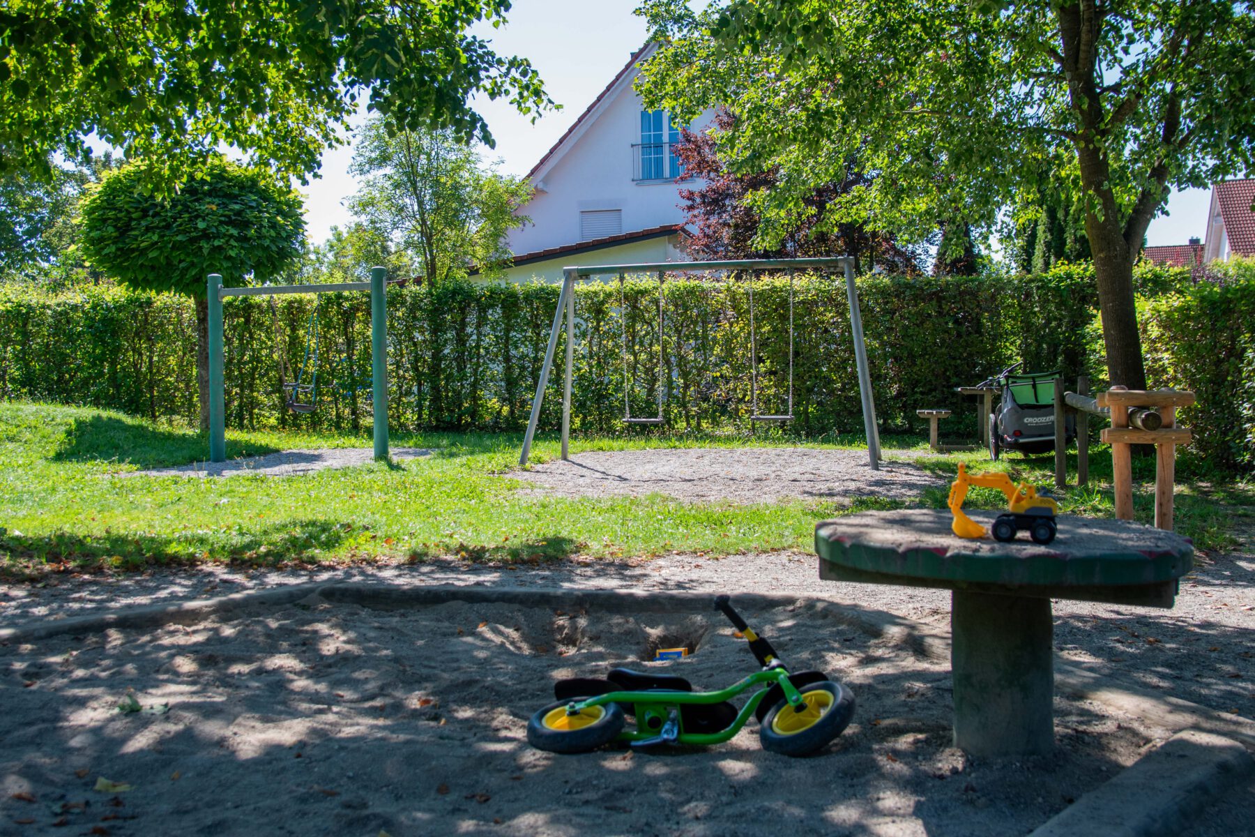 Am Spielplatz im Lilienweg landet das Fahrrad schnell mal im oder vor dem Sandkasten, weil die anderen Spielgeräte so verlockend aussehen, dass keine Zeit bleibt, das Radl ordentlich abzustellen. Sowohl das Klettergerüst mit seinen auffälligen grünen Rohren als auch die lustige „Insekten“-Wippe tun es den jungen Gästen der Anlage besonders an. Mamas oder Papas, die mit Nachwuchs im Kleinkindalter den Spielplatz besuchen, können ihre Kleinen entspannt in die Babyschaukel setzen. Und wenn alle müde vom Spielen sind, trifft sich Klein und Groß am Tisch, um sich dort auszuruhen oder sich zu überlegen, welches Gerät unbedingt nochmal ausprobiert werden muss.